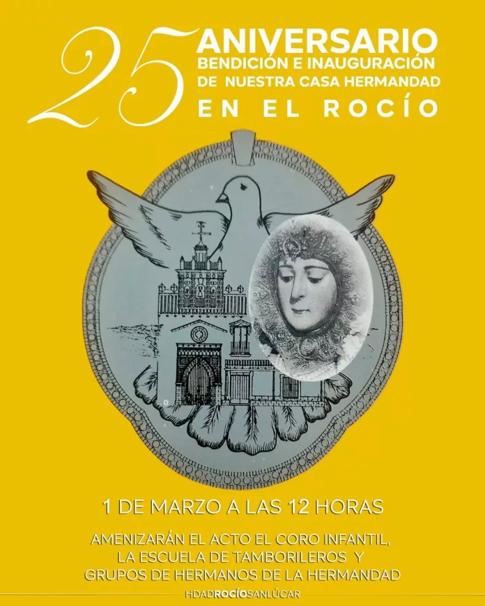 El domingo, 1 de marzo, la Hermandad de Nuestra Señora del Rocío de Sanlúcar de Barrameda celebrará en el Rocío el 25 aniversario de la inauguración y bendición de la actual casa de Hermandad.