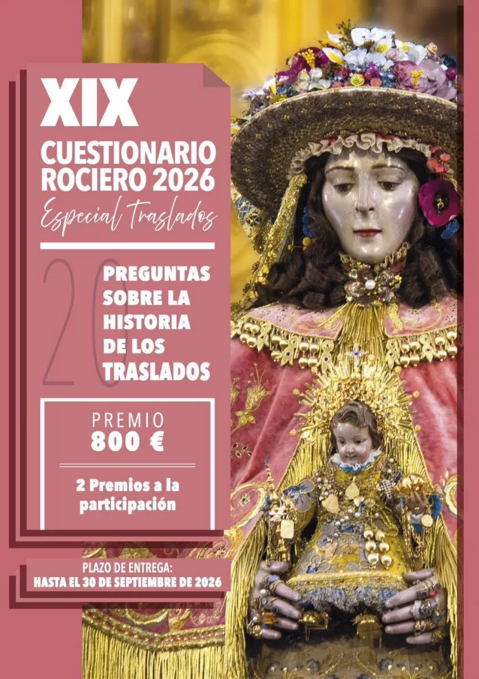 ALMONTE | Redacción Periódico Rociero | El Ayuntamiento de Almonte ha abierto oficialmente la convocatoria para el Concurso Cuestionario Rociero 2026. En esta ocasión, el certamen adquiere un cariz aún más significativo al celebrarse bajo la temática de la Edición Especial Venidas, invitando a los participantes a sumergirse en la historia y los ritos que rodean el traslado de la Blanca Paloma a su pueblo.