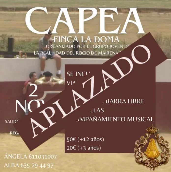 Hoy sábado, 2 de noviembre, iba a tener lugar una jornada de convivencia organizada por la Hermandad de Nuestra Señora del Rocío de Mairena del Alcor.