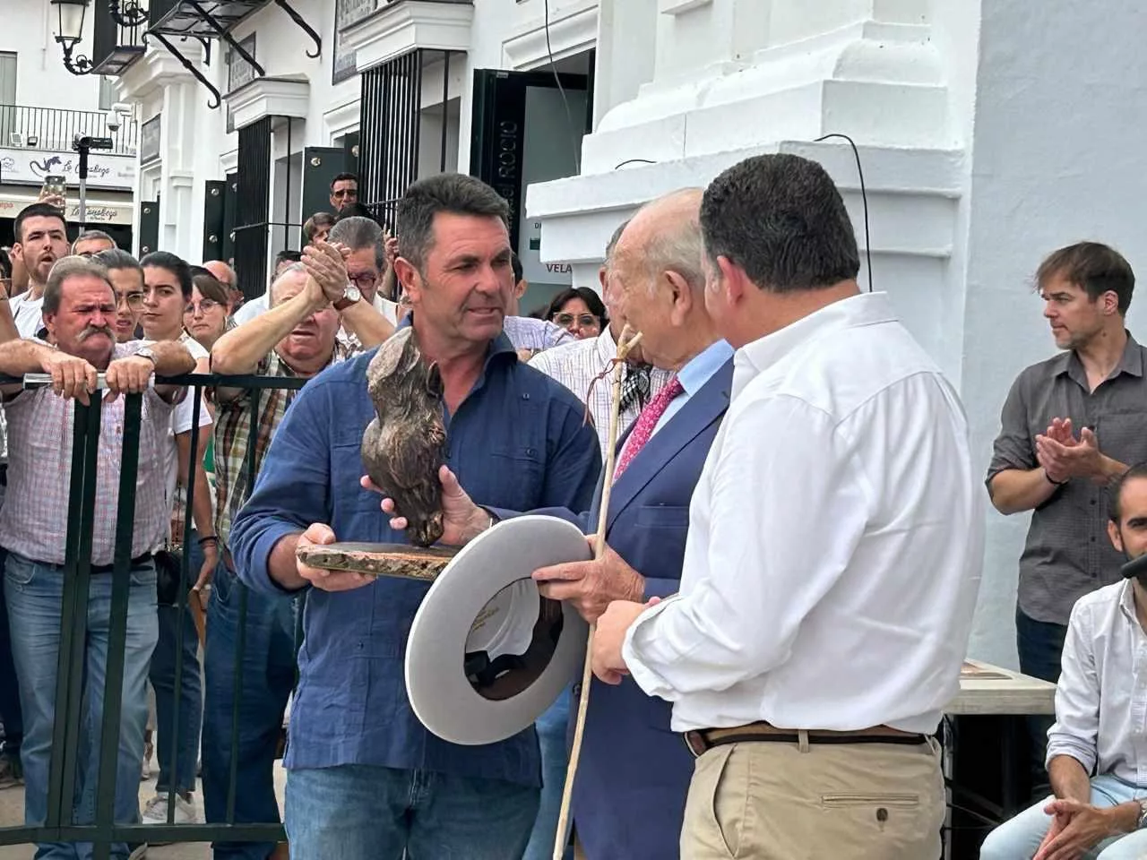 Acompañado por representantes de la Hdad Matriz de Ntra Sra del Rocío de Almonte y de la Real Hermandad de Nuestra Señora del Rocio de Jerez de la Frontera, quien fuera Hermano Mayor de la Hermandad del Rocío de Jerez de la Frontera de 1970 a 1977, recibía este reconocimiento por su amplia trayectoria y su aportación al mundo del caballo, y su relación con el entorno de Doñana a través de su devoción a la Patrona de Almonte, Ntra. Madre María Santísima del Rocío.