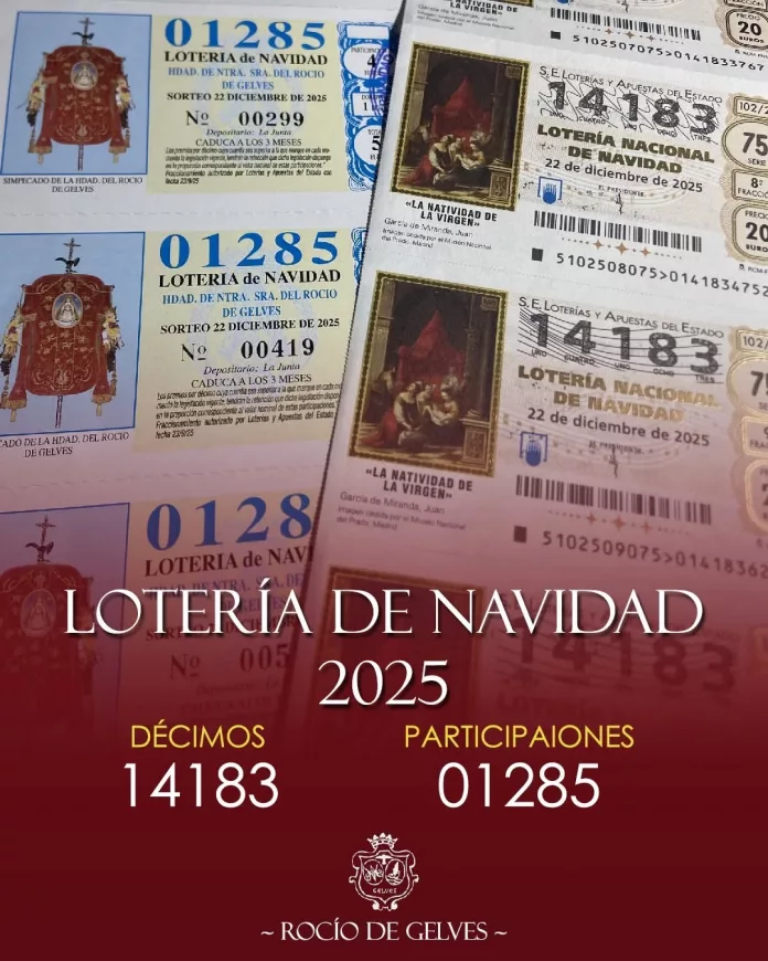 La Hermandad de Nuestra Señora del Rocío de Gelves tiene a la venta sus décimos y participaciones para dicho sorteo.