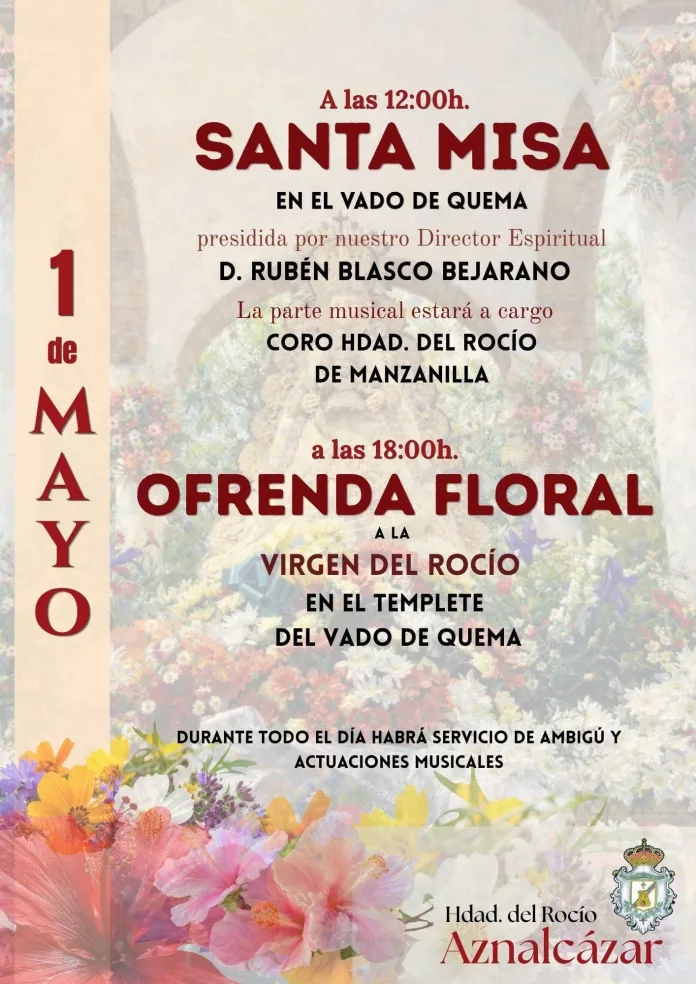 AZNALCÁZAR | Redacción Periódico Rociero | El calendario rociero se detiene este próximo 1 de mayo en uno de los lugares más emblemáticos de la geografía marismeña: el Vado de Quema. Como marca la tradición, el Templete de la Virgen del Rocío acogerá la celebración de la Santa Misa y la posterior Ofrenda Floral, en una jornada que sirve para abrir de par en par las puertas de una nueva Romería.
