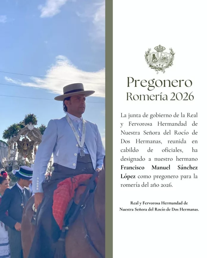 La Junta de gobierno de la Hermandad de Nuestra Señora del Rocío de Dos Hermanas ha nombrado al pregonero de esta próxima romería de 2.026 a don Francisco Manuel Sánchez López.