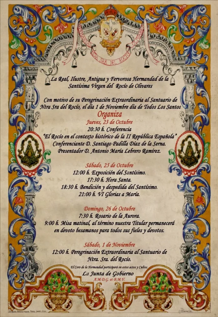 La Hermandad del Rocío de Olivares empieza hoy sus cultos preparatorios con motivo de su peregrinación oficial del 1 de noviembre.