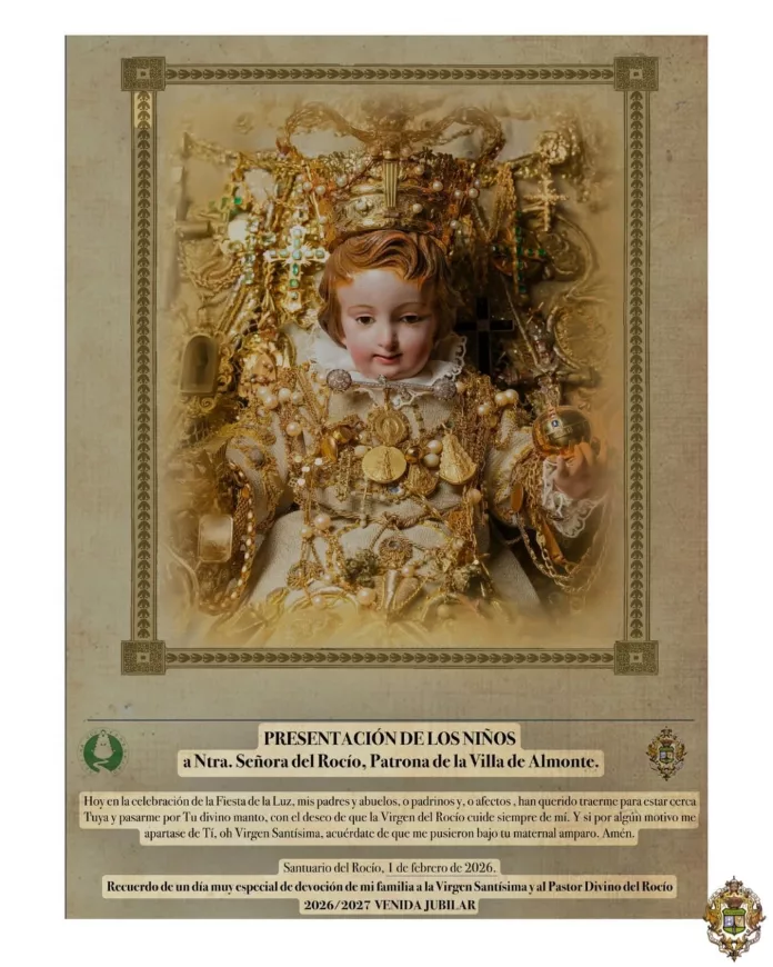 Mañana, domingo, 1 de febrero, tras la Eucaristía de las 10 de la mañana, será la tradicional presentación de los niños a la Virgen, que empezará sobre las 11:00 horas, poniéndose a los más pequeños bajo su manto.