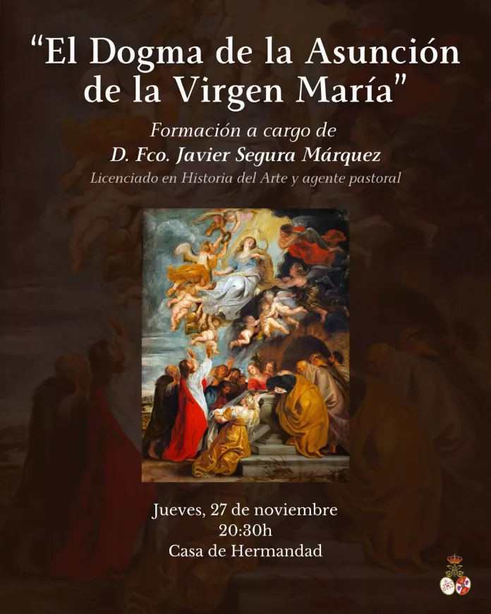 La charla estará a cargo de Francisco Javier Segura Márquez, licenciado en Historia del Arte y agente pastoral, que hablará sobre “El dogma de la Asunción de la Virgen María”.
