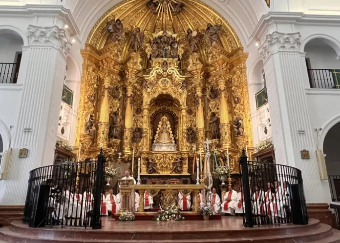 A esa hora, se celebrará la Misa en el Santuario del Rocío, oficiada por el Señor Obispo de la Diócesis de Huelva, don Santiago Gómez Sierra.