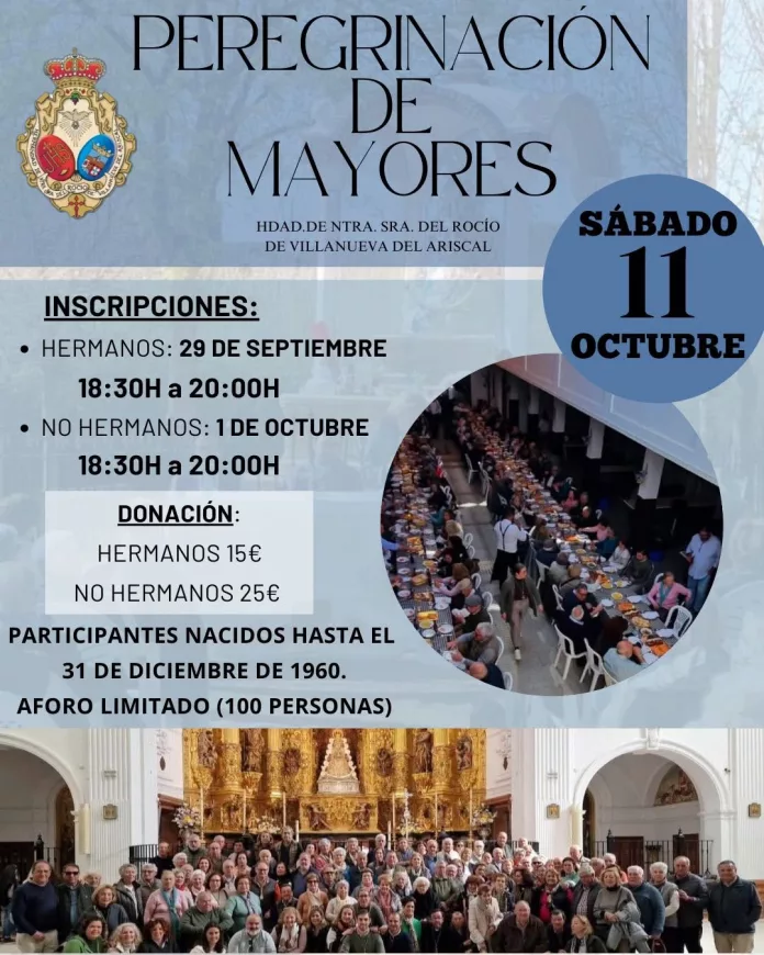 Hoy, sábado, 11 de octubre, tendrá lugar la peregrinación de los mayores de la Hermandad de Nuestra Señora del Rocío de Villanueva del Ariscal.