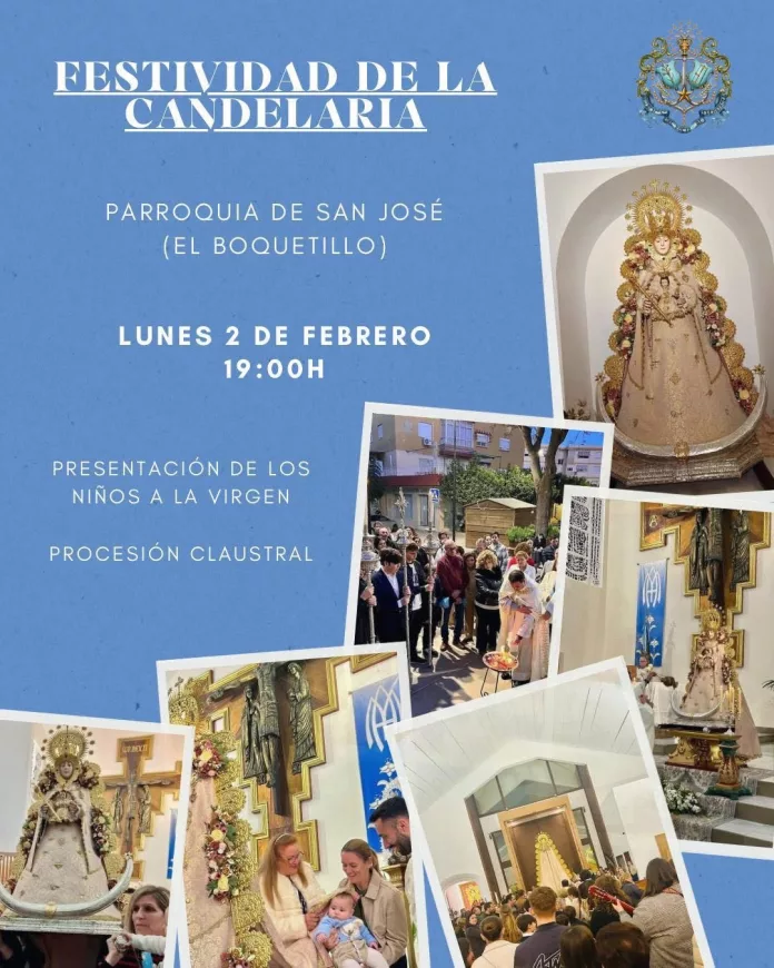 Hoy, lunes, 2 de febrero, tendrá lugar la solemne Eucaristía que celebra la Hermandad de Nuestra Señora del Rocío de Fuengirola en honor a su titular, con motivo del día de la Candelaria.