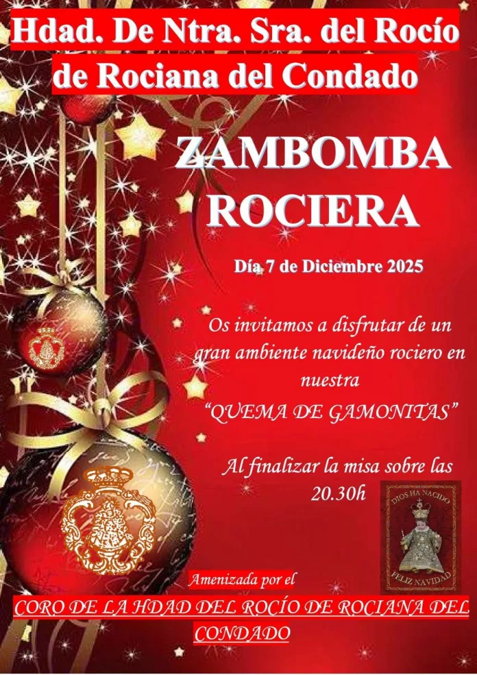Después, se disfrutará de la zambomba rociera, con la música en directo del coro de la Hermandad y degustación de chocolate y dulces típicos navideños.