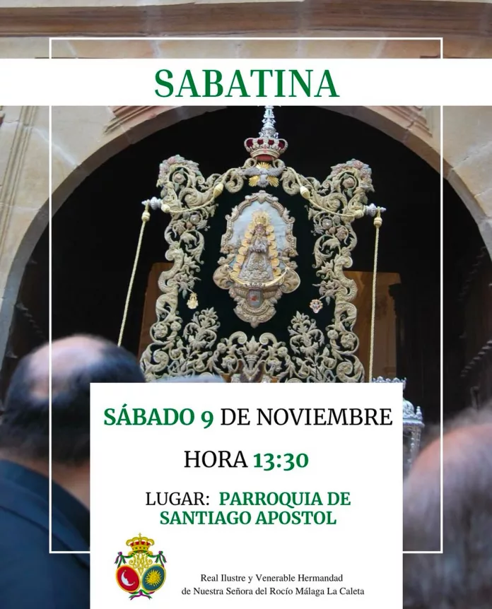 Hoy, sábado, 9 de noviembre, la Hermandad de Nuestra Señora del Rocío de Málaga La Caleta celebrará su Misa mensual de culto a la Virgen.