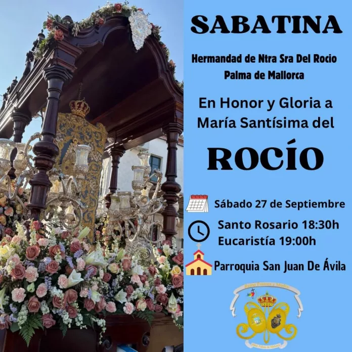 En la jornada de hoy, sábado, 27 de septiembre, tendrá lugar la sabatina de la Hermandad de Nuestra Señora del Rocío de Palma de Mallorca, en honor a su titular.