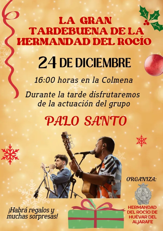 Desde las 16:00 horas, en La Colmena, todos los hermanos y personas que se acerquen a celebrar la “Tardebuena”, podrán disfrutar de los previos a una Noche tan especial con la música de Palo Santo y compartir un rato de convivencia y encuentro.