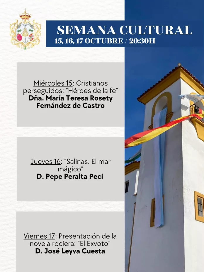 Durante los días 15, 16 y 17 de octubre, la Hermandad de Nuestra Señora del Rocío de Puerto Real celebra la Semana cultural, una cita que cada año reúne a numerosos hermanos en torno a los ponentes que protagonizan este ciclo.