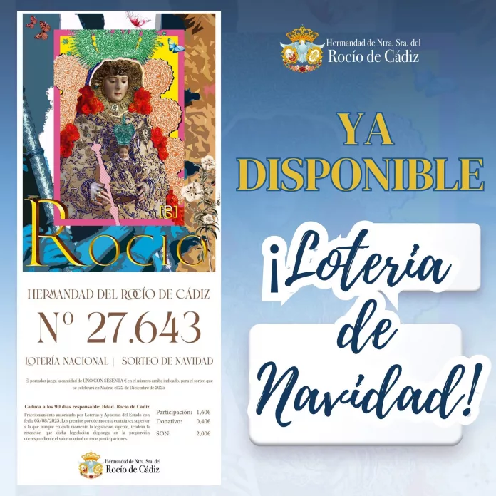 Con motivo del sorteo de la Lotería de Navidad del próximo 22 de diciembre, la Hermandad de Nuestra Señora del Rocío de Cádiz ha puesto a la venta sus participaciones.