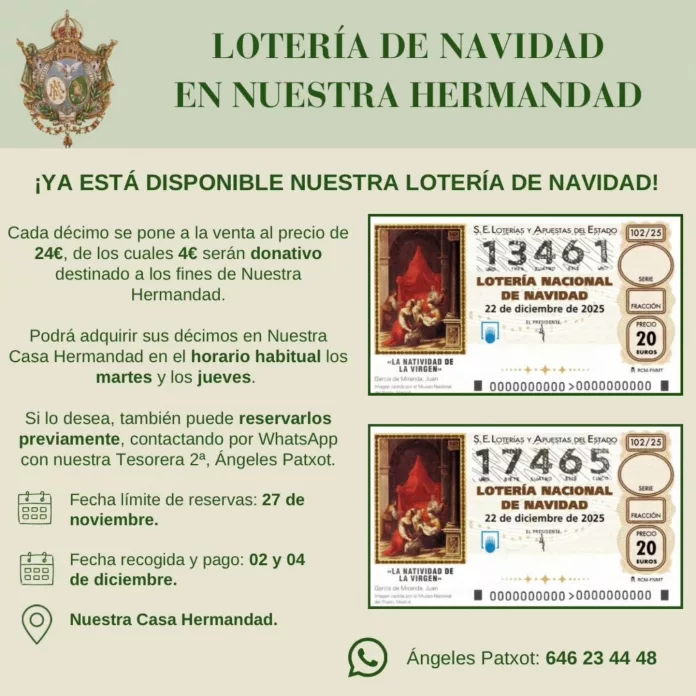 La Hermandad del Rocío de La Macarena tiene disponibles sus décimos de Loterías para el sorteo de Navidad.