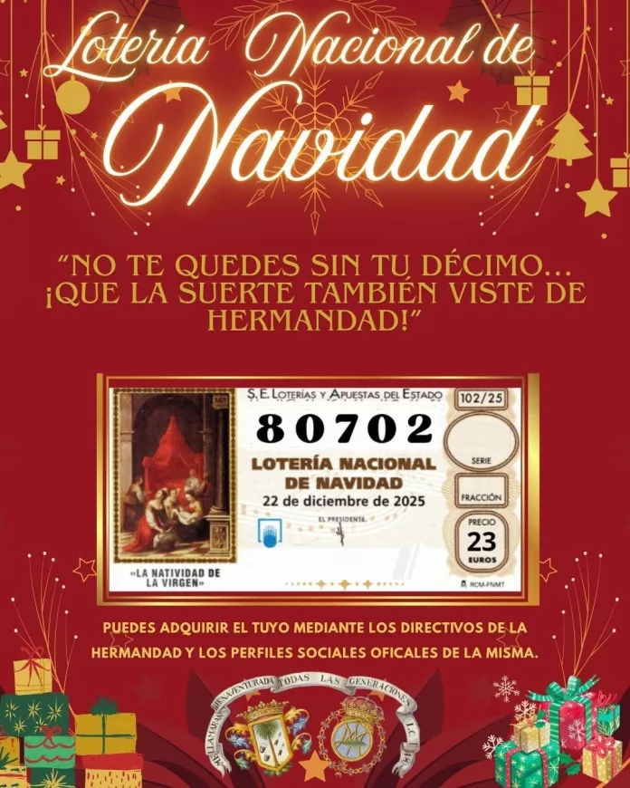 La Hermandad de Nuestra Señora del Rocío de La Palma del Condado tiene a disposición de sus hermanos y vecinos de la localidad, los décimos con el número 80.702, disponible en la casa de Hermandad y a través de los miembros de la Junta de gobierno.
