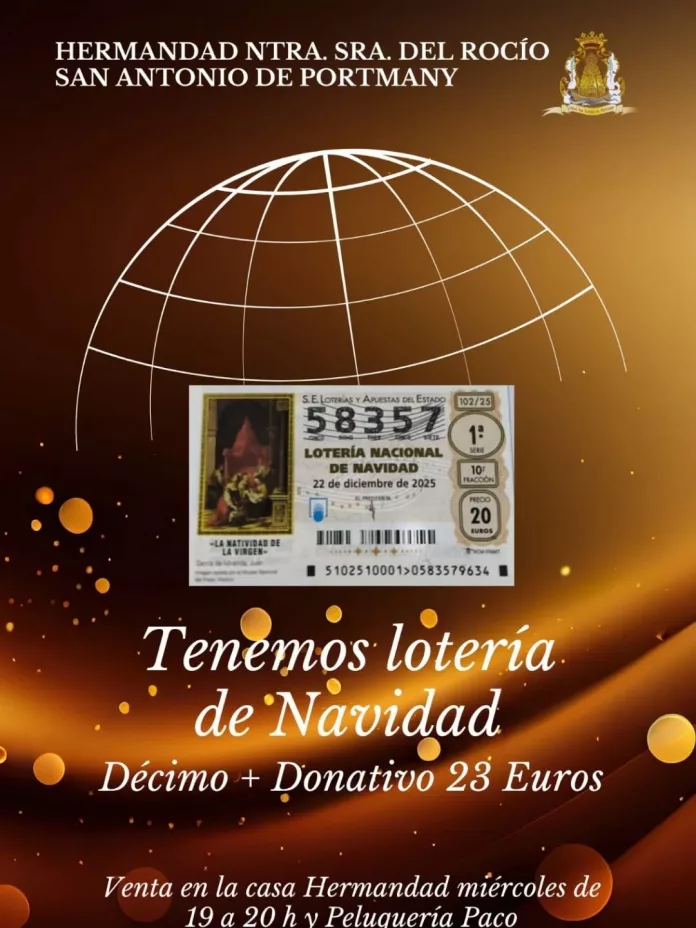 El número 58.357 es el que ha elegido la Hermandad de Nuestra Señora del Rocío de San Antonio de Portmany para la participación en el sorteo de la Lotería de Navidad de este año.