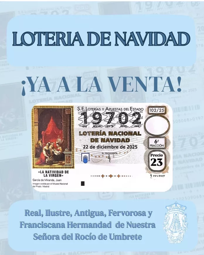 La Hermandad del Rocío de Umbrete, tiene a disposición de sus hermanos los décimos con el número 19.702, y pueden adquirirse en la casa de Hermandad, en puntos colaboradores de la corporación y por medio de los miembros de la Junta de gobierno.
