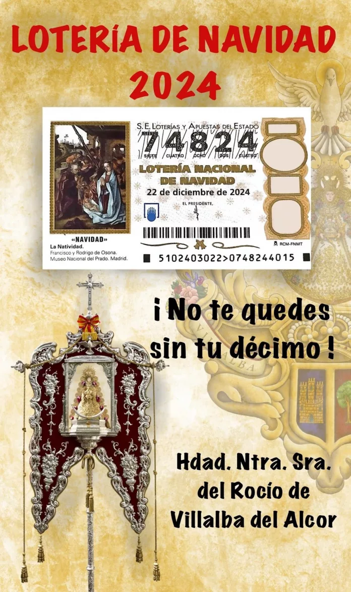 Los hermanos y vecinos de la localidad de Villalba del Alcor, ya pueden adquirir los décimos para el sorteo de la Lotería de Navidad que la Hermandad del Rocío tiene a su disposición.