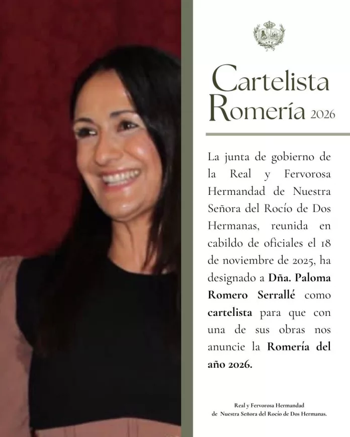 La Junta de gobierno de la Hermandad de Nuestra Señora del Rocío de Dos Hermanas, reunida en Cabildo de Oficiales, acordó la elección del cartelista de este año para la romería de 2.026.