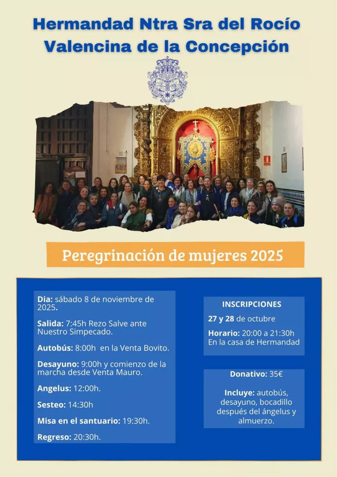 Hoy, 8 de noviembre, sábado, tendrá lugar la peregrinación andando de mujeres al Rocío, que organiza la Hermandad de Valencina de la Concepción.
