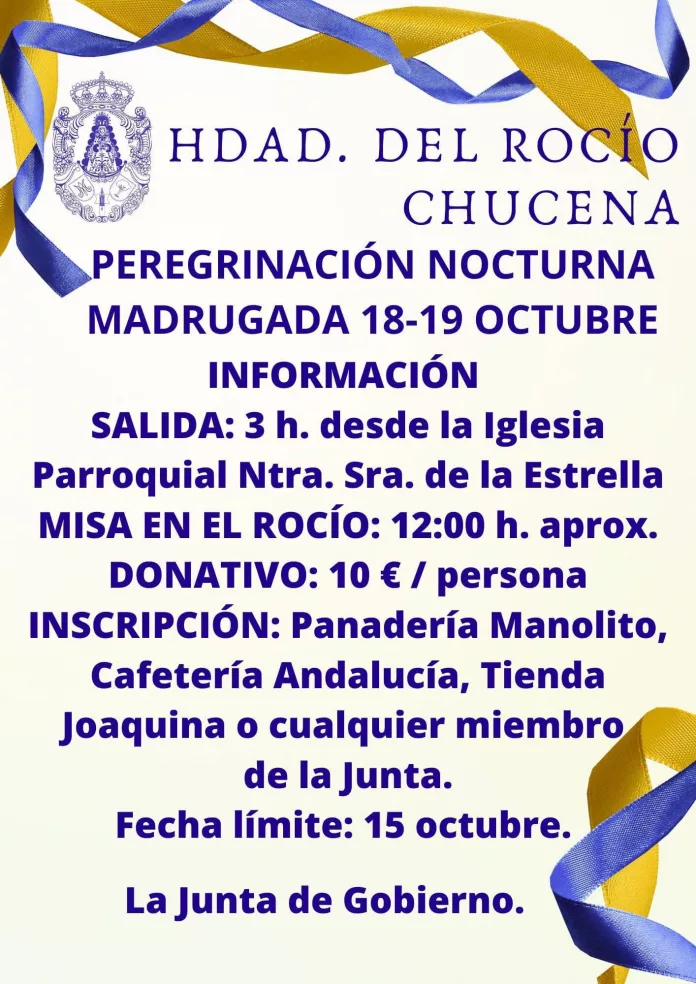 En la madrugada del 18 al 19 de octubre, ha tenido lugar la peregrinación de la Hermandad de Nuestra Señora del Rocío de Chucena.