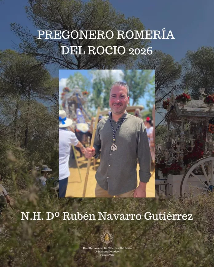 La Junta de gobierno de la Hermandad de Nuestra Señora del Rocío de Mairena del Alcor ha nombrado al que será pregonero de la próxima romería, a don Rubén Navarro Gutiérrez.