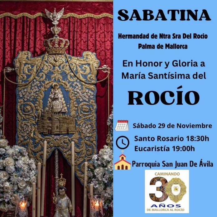 La Hermandad del Rocío de Palma de Mallorca celebrará su Misa sabatina de culto a la Virgen.