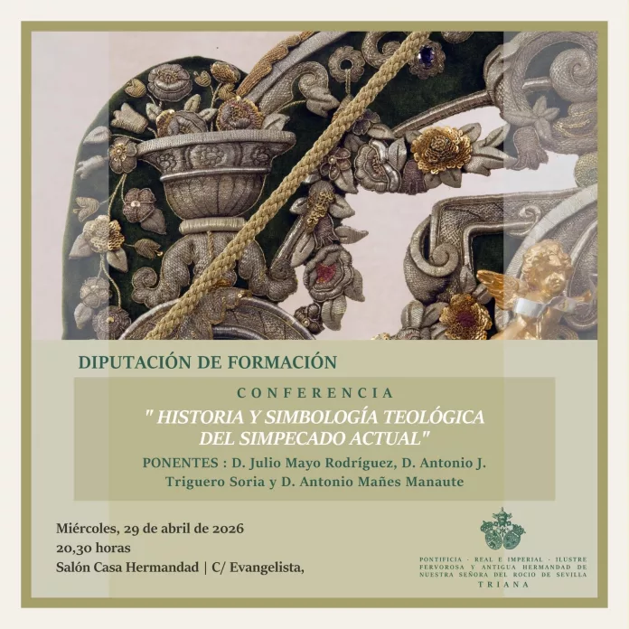SEVILLA | Redacción Periódico Rociero | La calle Evangelista se convierte esta semana en epicentro del conocimiento rociero. La Hermandad del Rocío de Triana, a través de su Diputación de Formación, ha programado una conferencia de hondo calado titulada «Historia y simbología teológica del Simpecado actual».